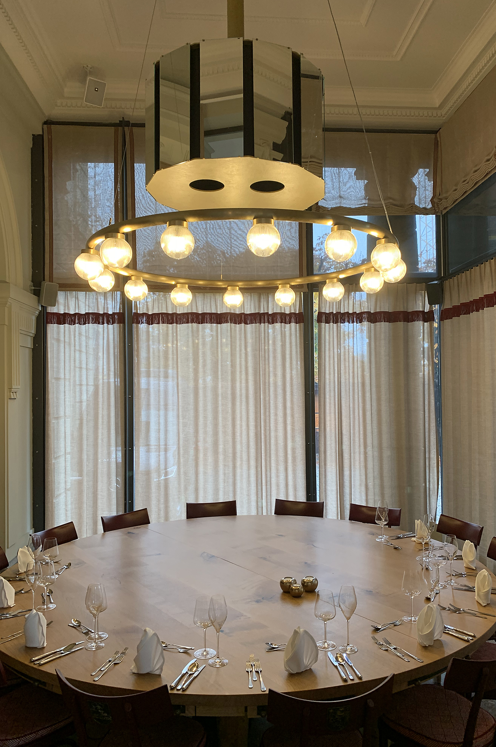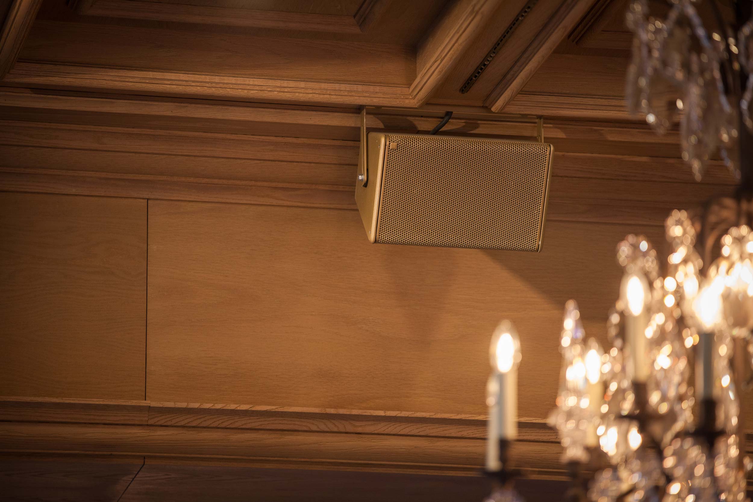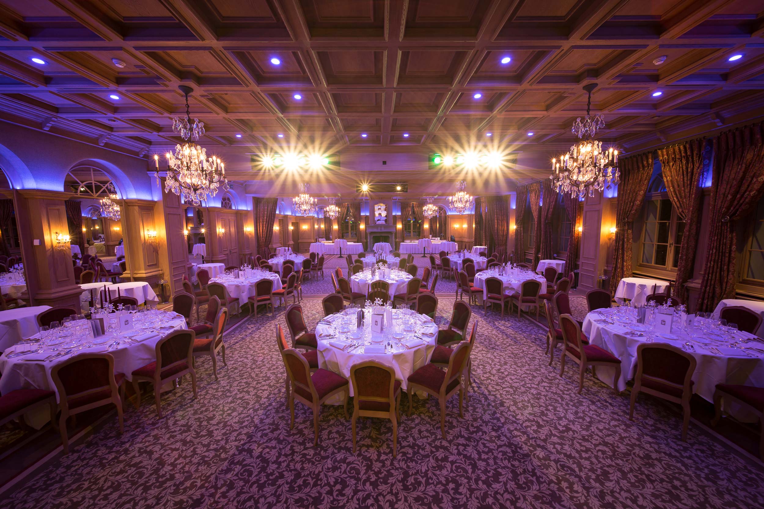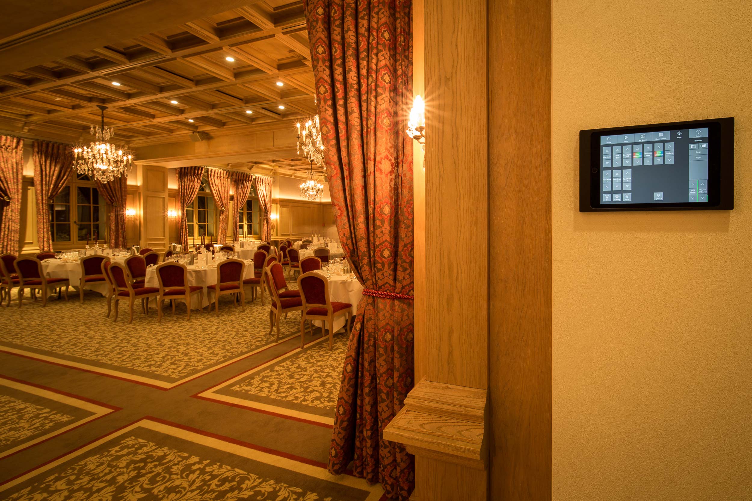 Soviel zur Ausgangslage: bildschöne Kronleuchter aus Kristall hängen von der Decke, der Kamin und die Holzvertäfelung sorgen für ein angenehmes Ambiente und die Aussicht auf die Schweizer Alpen scheint zum Greifen nahe. Der Salle Baccarat beeindruckt seine Gäste durch seinen unverkennbaren Stil – auch in Sachen Audio-, Video- und Lichttechnik.