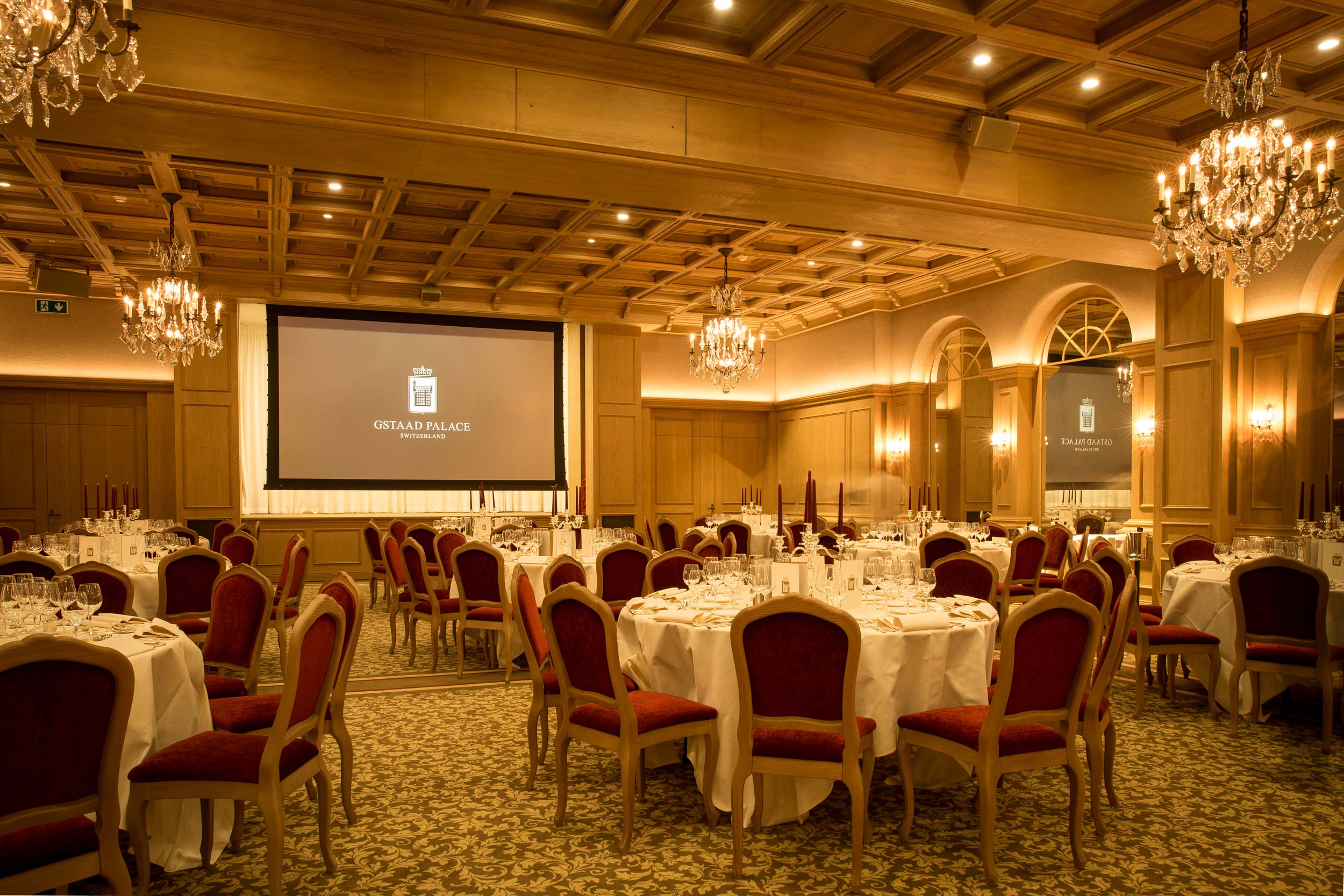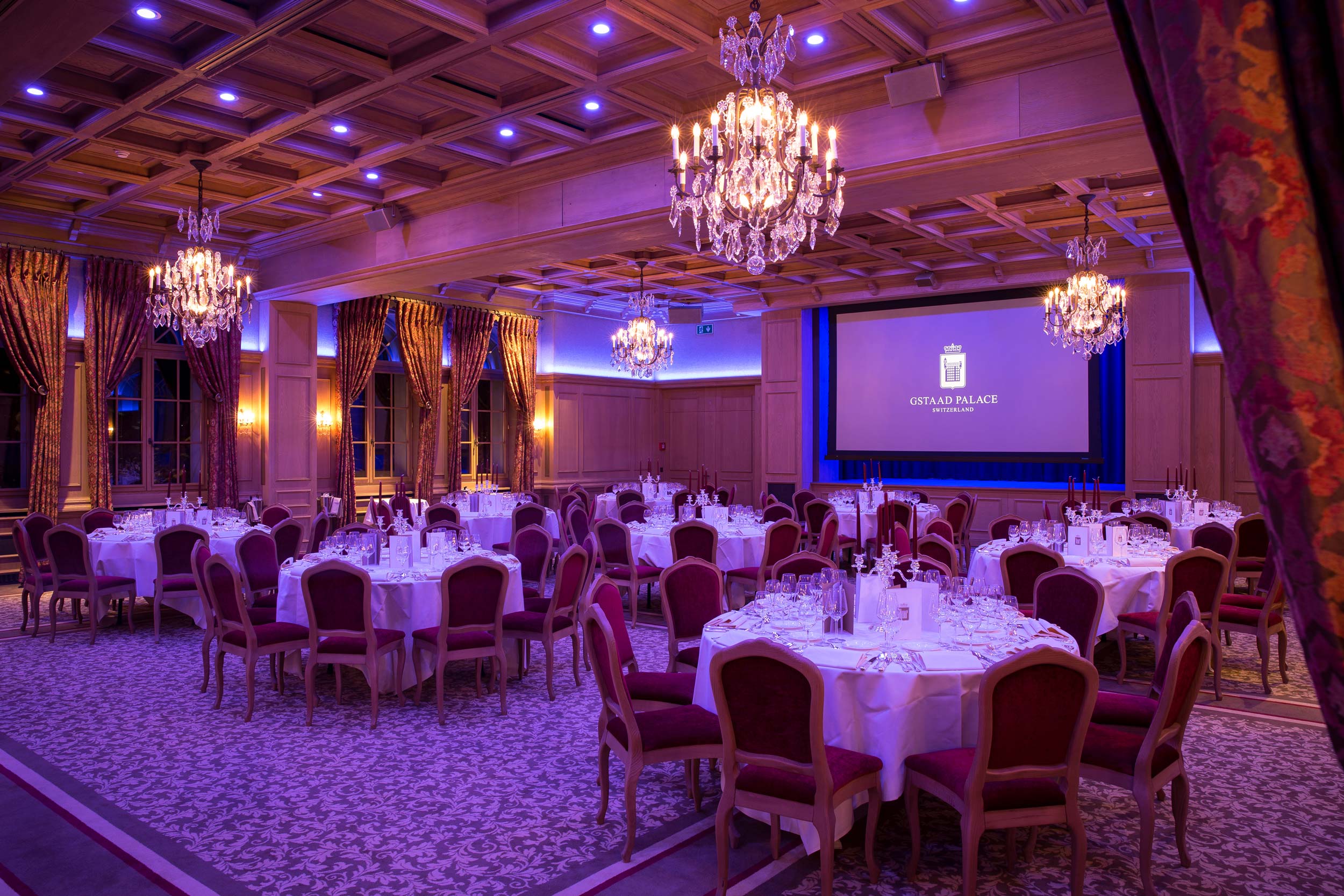 Der Ballsaal Baccarat – das Prunkstück des Hotel Gstaad Palace – erstrahlt seit Sommer 2016 nicht nur dank den bekannten Kronleuchtern aus Kristall in neuem Glanz. Auf 240 m2 steht eine Konferenztechnik nach neuestem Standard zur Verfügung.