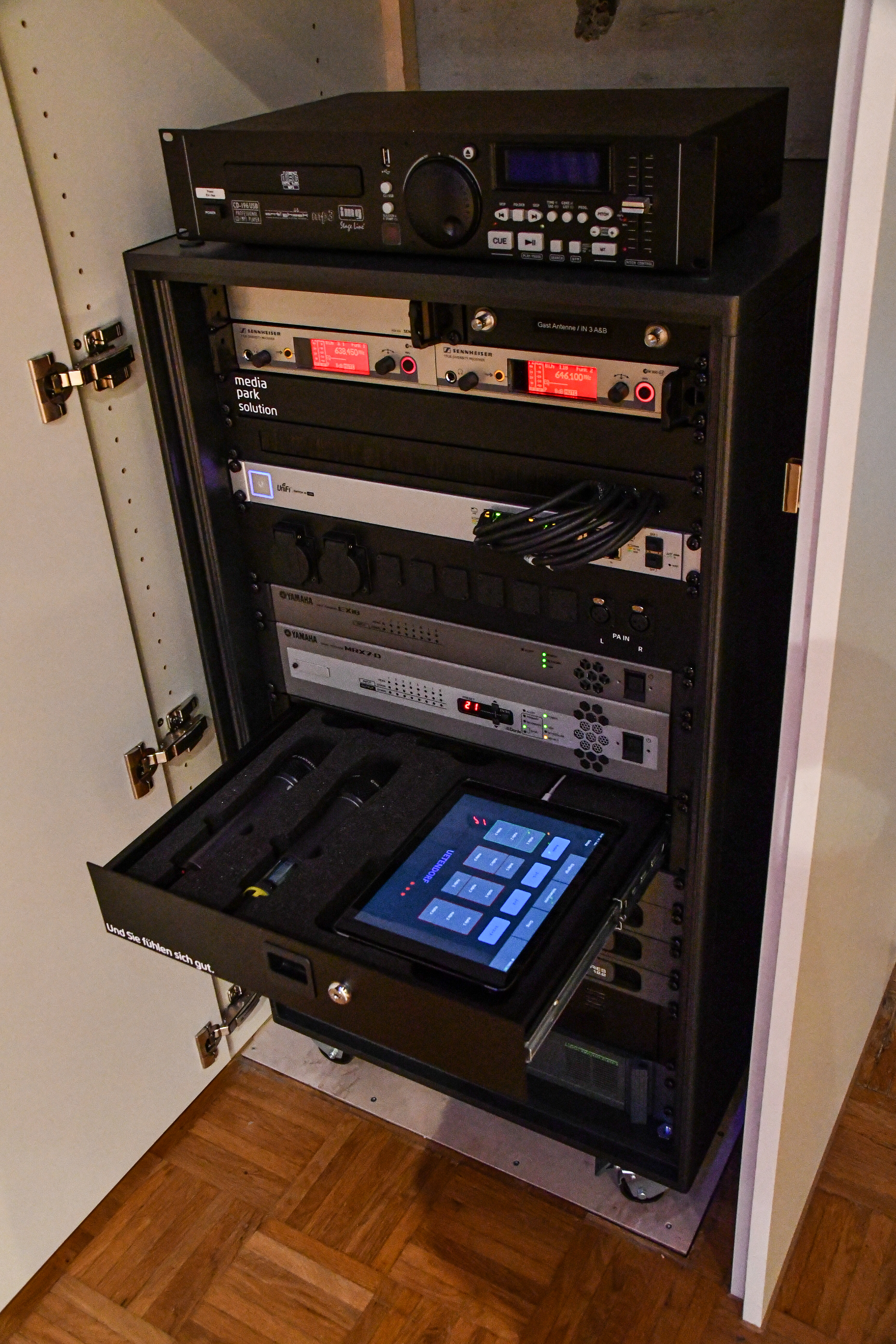 Im Auftrag von Winkler Livecom zeichnet sich mediapark für die Planung und Umsetzung der Audiotechnik sowie der Mediensteuerung verantwortlich und ist im Rahmen der technischen Projektleitung von Anfang bis Schluss dabei.
